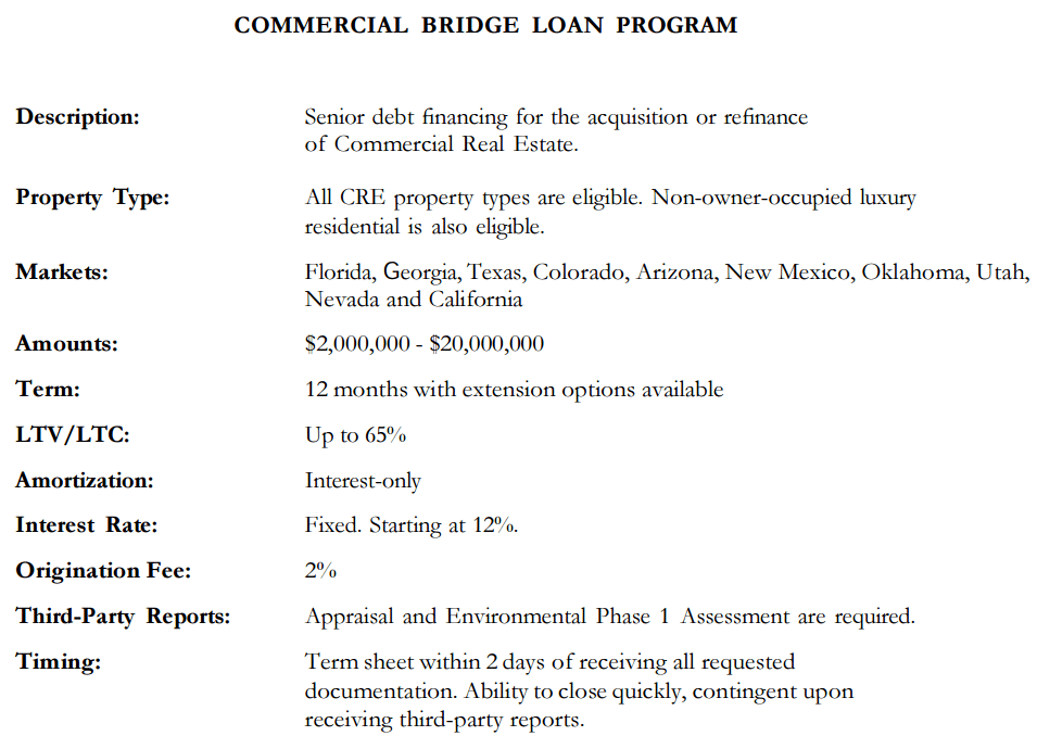 Deal 3: Our borrower is purchasing a luxury residential property. We are providing short-term financing as this is a quick close.