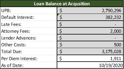 This lender offers up to 60% LTC on NPLs. Just because your lender allows 60% leverage doesn’t mean you have to take it. The leverage you utilize should depend on i) the deal and ii) the deal relative to your overall portfolio. We felt comfortable using 60% on this deal due to our legal position, property equity, and overall company liquidity.